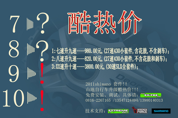 酷热价!!!2011shimano 套件!!山地自行车升级中! Post By:2010/8/3 10:53:41 [只看该作者]