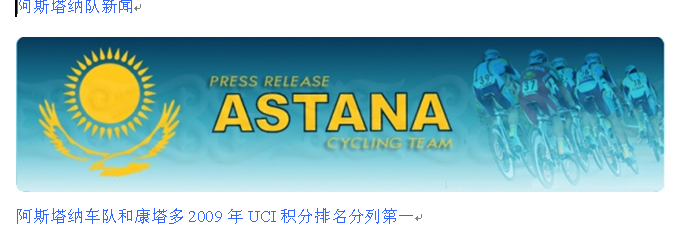 阿斯塔纳车队和康塔多2009年UCI积分排名分列第一 Post By:2009/11/2 3:22:31 [只看该作者]