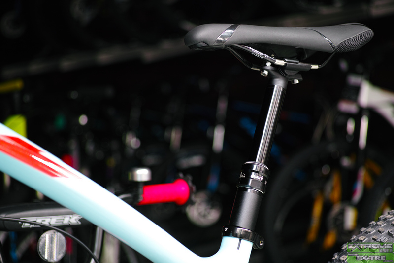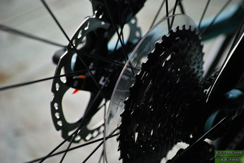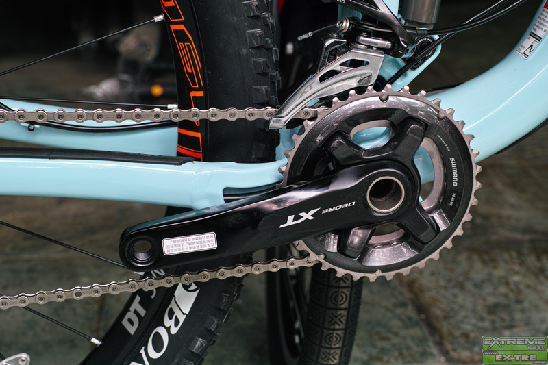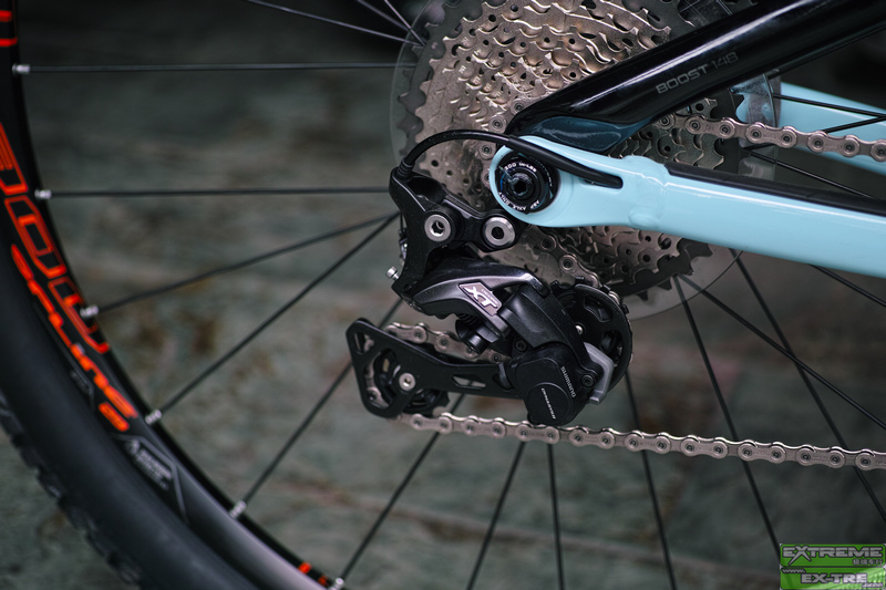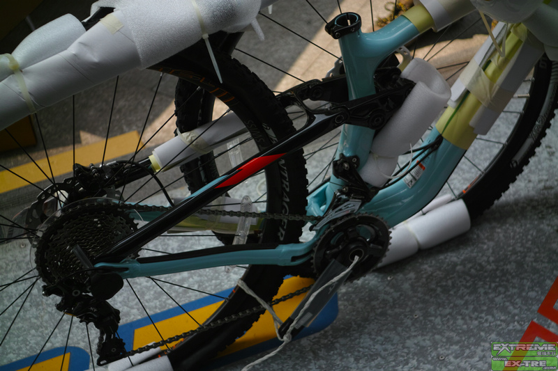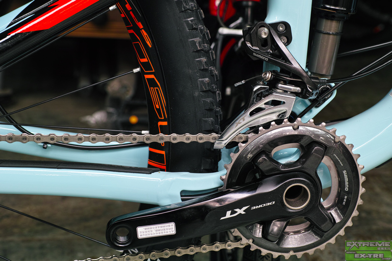 细细看来,FUEL EX9.8其保留了以前所有的优秀设计,比如R1摇臂系统,ABP刹车漂移系统,E2头管,EVO整体联杆,BB90超宽中轴壳,FOX+TREK之DRCV前后减震系统,OSB/TLR偏心无缝钪铝合金无内胎真空系统轮圈,桶轴系统...可惜没有LOW-HI高低后三角斜下叉,为什么呢!?