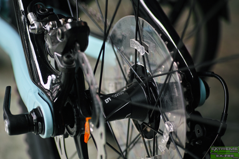 3,后刹车取消了国际标准安装方式,而采用类似前叉A型柱式安装方式,这样大大减少了安装组件的零件数,重量下降;