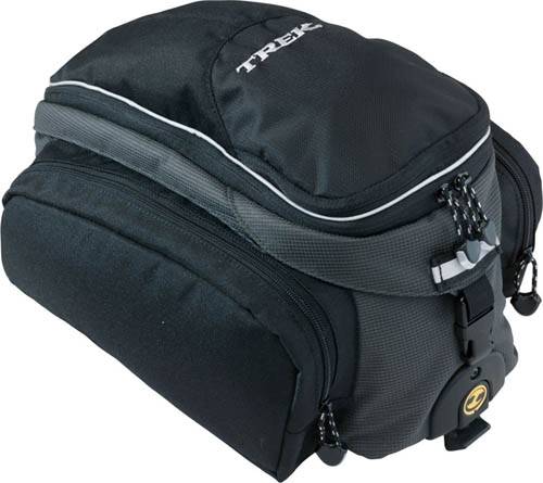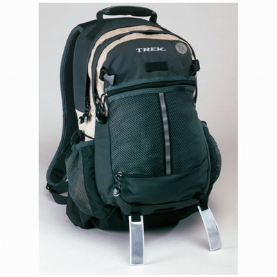 | ? Comfort and support provided by contoured shoulder straps and padded back panel ? Each pack has plenty of room for a water reservoir and other cargo ? Tall mesh side pockets for shoes and bottles, mesh back panel for a helmet and additional organizer pockets to store your gear ? Includes an audio player pocket with headphone port ? Helps keep you visible at night with reflective trim and a loop to attach a Trek LED tail light ? Load is stabilized by compression straps on bottom and side of pack; stays dry with built-in rain cover ? Ultimate in smart design, featuring a stowable waist belt and soft handle |