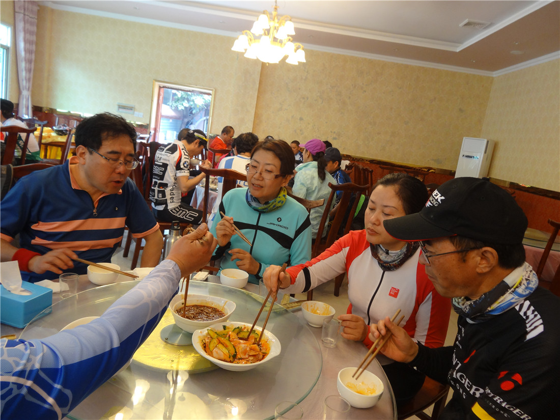 昨天的线路非常舒服,蓝天白云,避免大马路的灰和尾气。上午谭哥从小路带领大家大猫儿垭再到黄土。中午黄土大酒店午餐后,从新北川出发,感受了部分的比赛线路,然后从香水,通口河沿岸一路到九岭回绵阳。全天最短的120公里左右,远点的同学超130公里了。