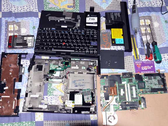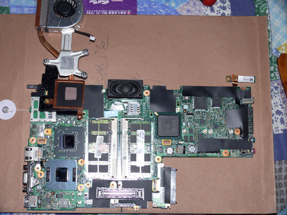费了九牛二虎之力!在网上下了拆机装配图,动用了精锐兵器,有个小螺丝太牛了,拧不 下来,挡住了强拆大军、用电钻精确洗下来的(小心电路呵!),顺带清洗散热器涂抹高档散热